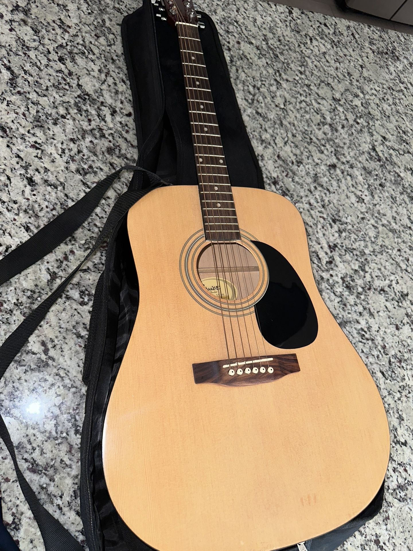 Squier by fender SA-100 acoustic guitar Great condition Included medium standard guitar picks (12pk) Includes carrying case. $60 obo