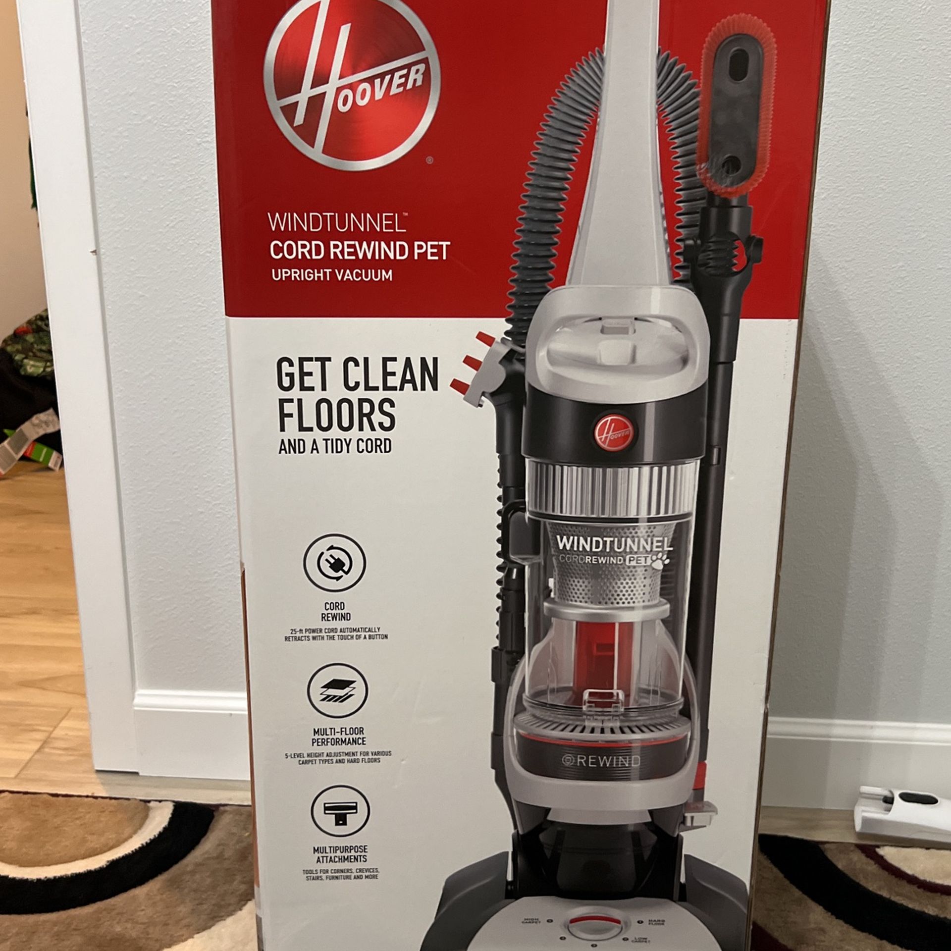 Windtunnel cord rewind pet upright vacuum. Never used and a closed box.