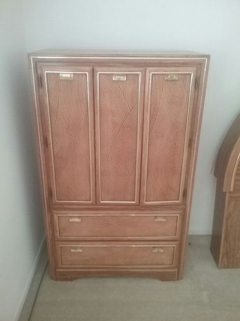 Vertical dresser with built in shelving and two drawers. Has a matching queen size head board for $85 to go with this vertical shelf for $85. Buy both together for $150