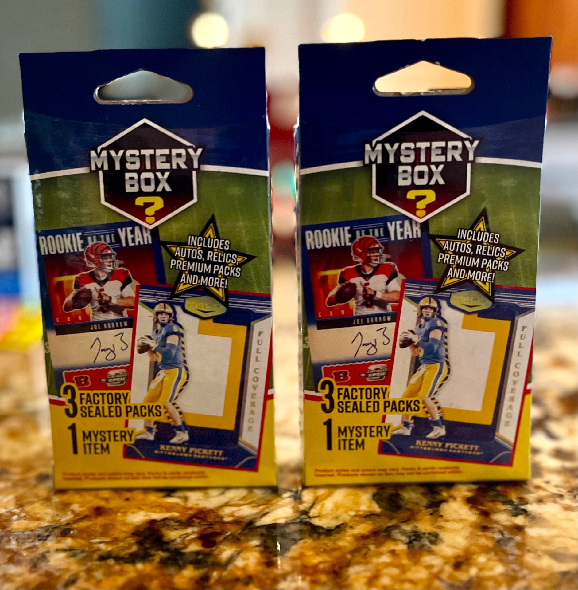 YOU ARE LOOKING AT THE 2022 MJ HOLDINGS CVS EXCLUSIVE FACTORY SEALED FOOTBALL MYSTERY HANGER BOX. EVERY BOX CONTAINS 3 FACTORY SEALED PACKS and 1 MYSTERY ITEM. LOOK FOR RANDOMLY INSERTED AUTOS, RELICS, PREMIUM PACKS and MORE! THESE BOXES WERE PURCHASED AT CVS AND ARE ALL FACTORY SEALED & UNWEIGHED. ALL BOXES ARE IN NM/MT CONDITION. ALL ITEMS COME FROM A SMOKE FREE/PET FREE HOME! PLEASE TAKE A LOOK AT MY OTHER ITEMS THAT I HAVE LISTED! THANKS FOR LOOKING AND GOOD LUCK! *Listing is for 1 MYSTERY PACK* 4 available, will consider working a deal for all 4 bought together. Message me with any questions!! Much Love and God Bless!