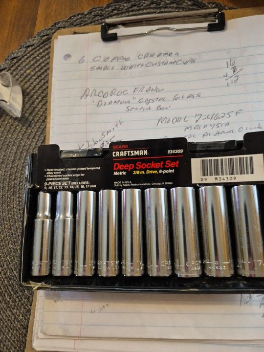 Craftsman nine piece deep socket set 3/8" drive ,6 point 9mm yo 17 mm. This set also includes a craftsman socket, wrench
