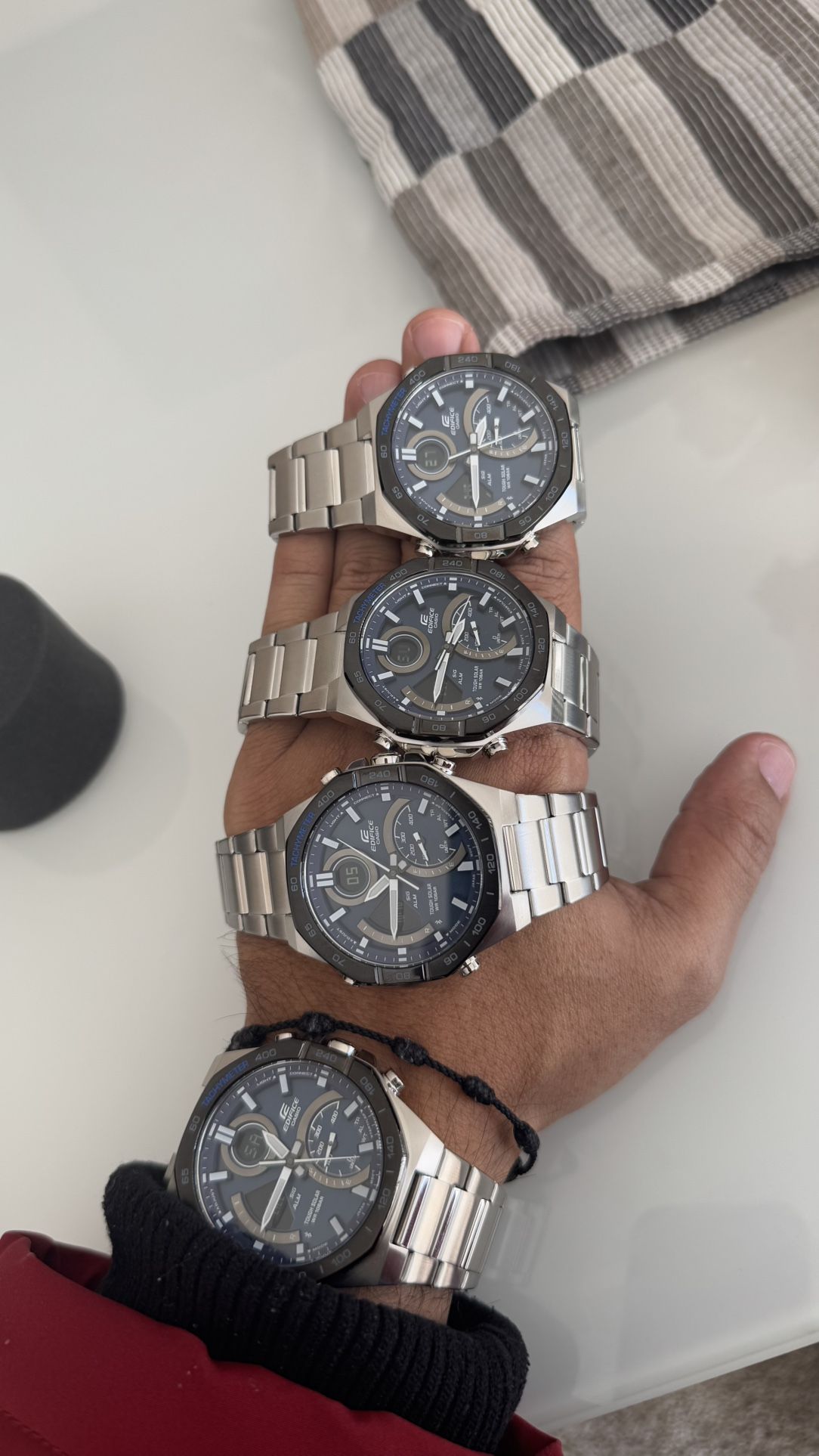 Casio Men's Edifice Bluetooth Solar doesn’t need battery Brand New no box $180 FIRM Only reason I’m selling for cheap it’s because they don’t have the box Pick up palatine area Product details About this item About this item This solar powered watch recharges itself in any kind of light,This solar watch does not require any battery replacement. - This Analogue-Digital watch has a calendar function: Day-Date , Bluetooth , Solar Powered , Stop Watch , Worldtime and Alarm High quality 21 cm length and 21 mm width Silver Stainless steell strap with a Fold over with push button clasp Case diameter: 44 mm, case thickness: 14 mm, case colour: Silver and dial colour: Blue Water resistant: 10 bars -Weight: 170 g The watch is delivered in an original gift box and has a warranty of 2 years Description This solar powered watch recharges itself in any kind of light,This solar watch does not require any battery replacement. - This Analogue-Digital watch has a calendar function: Day-Date , Bluetooth , Solar Powered , Stop W