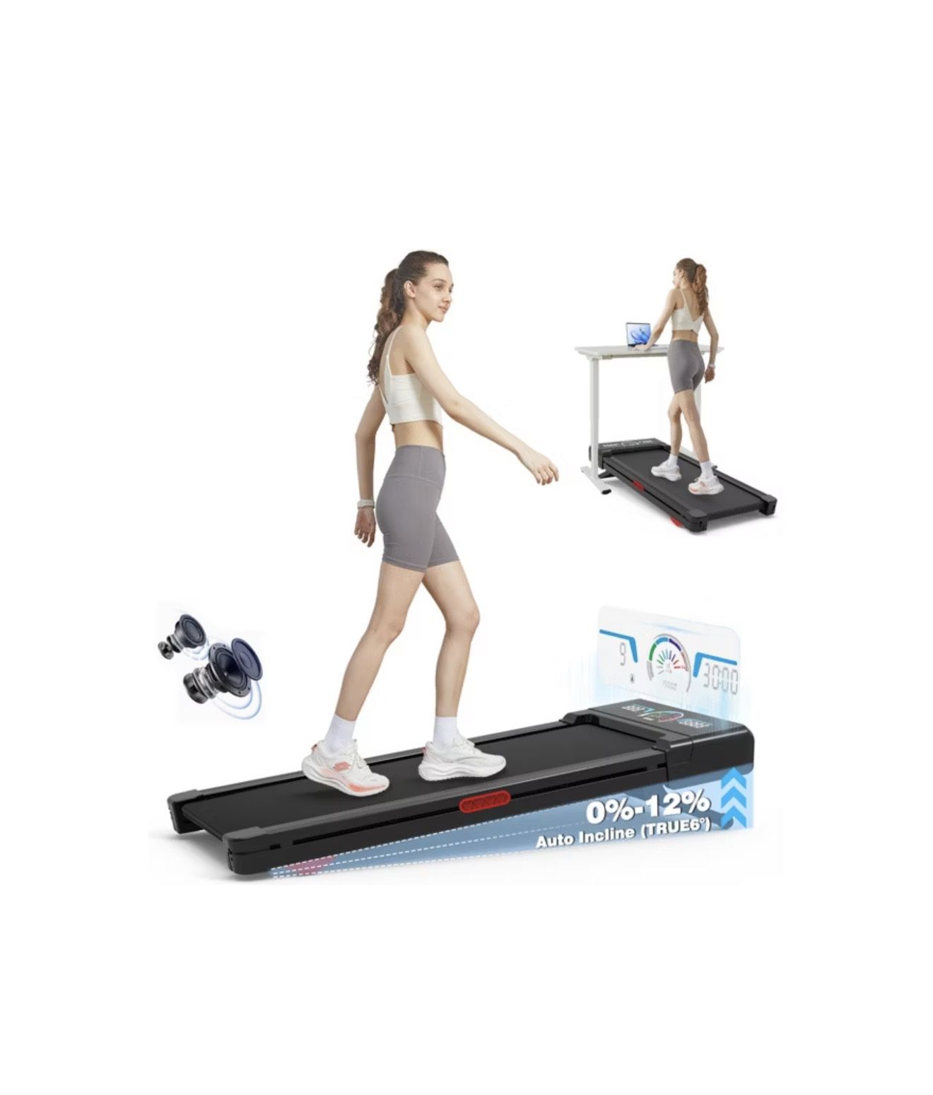 Walking Pad Treadmill with 12% 9-Level Auto Incline, 450 lbs Capacity RGB LED Screen, Bluetooth Speaker Under Desk Treadmill, Compact Treadmills for H