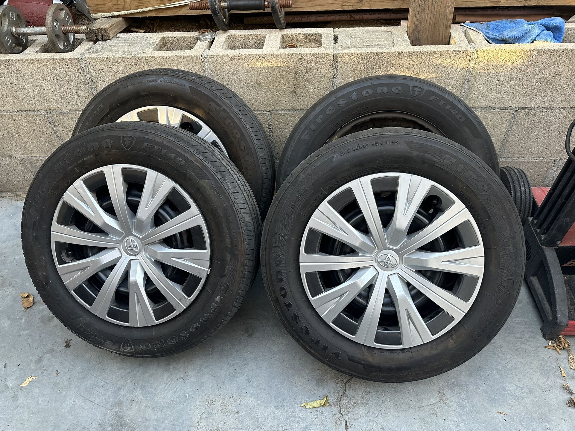 I have my 2023 Toyota Camry, LE rims and tires for sale I put new tires on my car and different rims, so I have no need for these. They are all in good shape. Two tires have about 70% thread and the other two about 50%. There is one hubcap missing so I’m selling all four as is! Asking $450 or best offer!