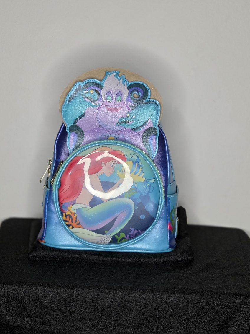 Brand New Disney Lounge Fly The Little Mermaid 35th anniversary glow in the dark mini backpack with adjustable straps comes in protective plastic bag