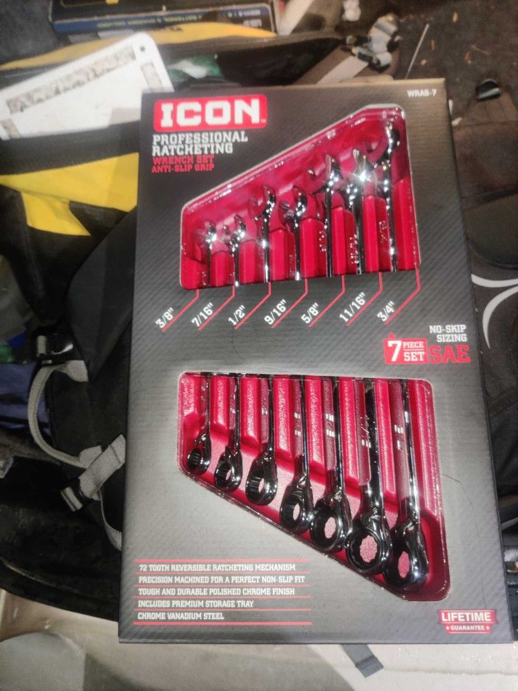 Brand New in the box Icon ratcheting wrench set 7 piece standard