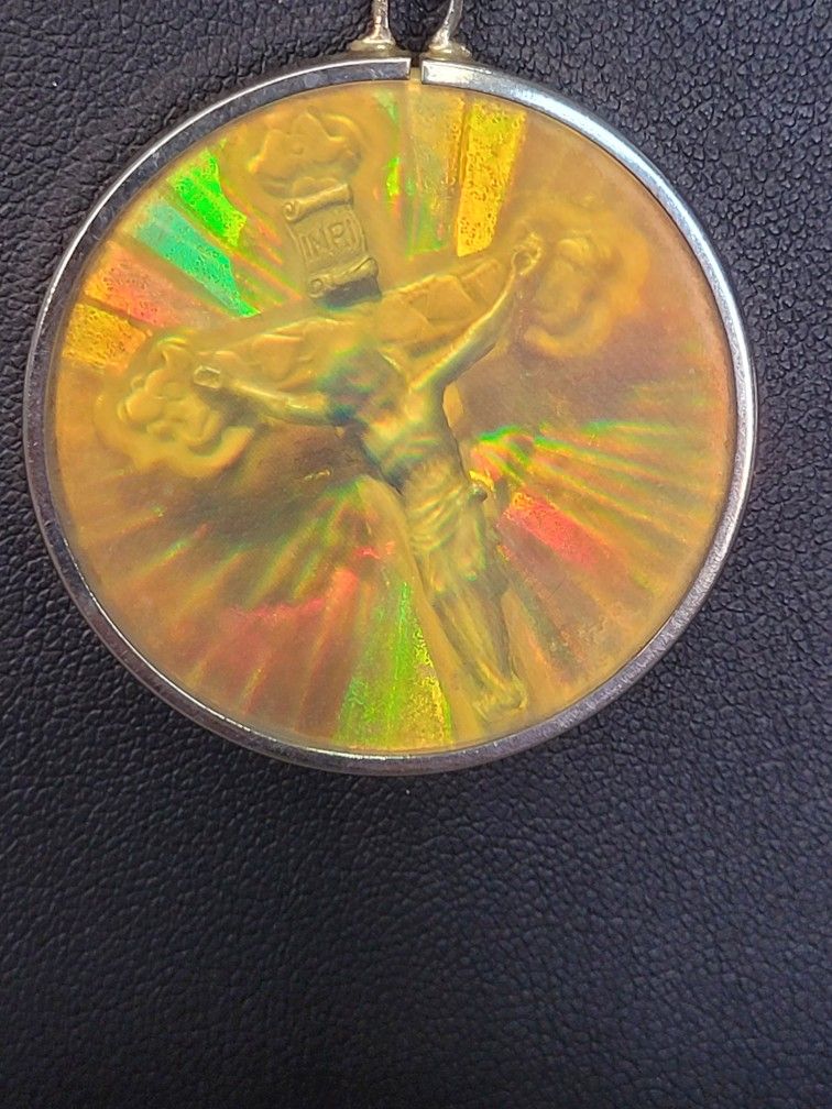 JESUS Christ On Cross Hologram Vtg. 3D Pendant Necklace Crucifixion Christian W/ Chain