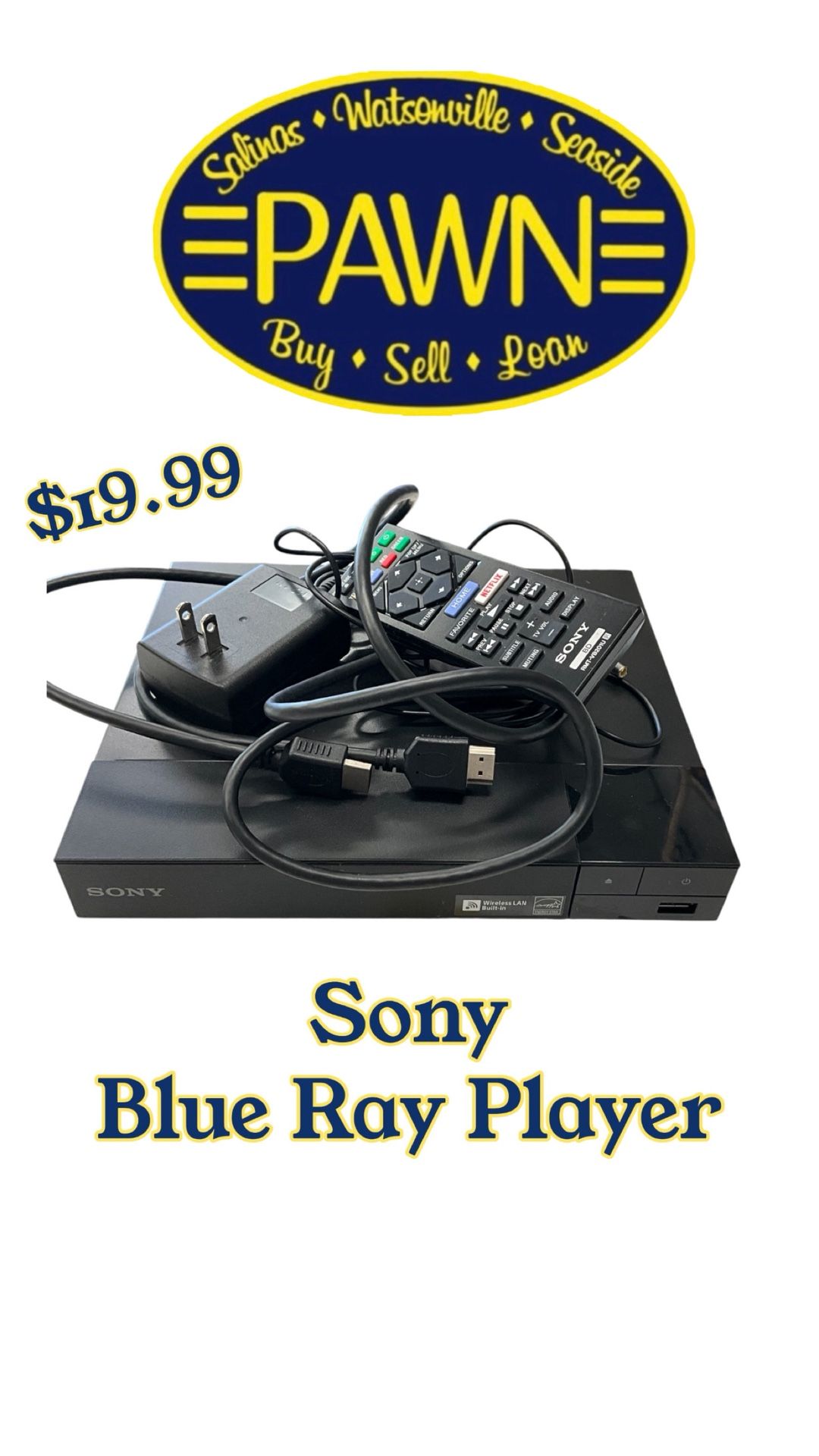 Sony blue Ray player Comes w remote Seaside Pawn 743 Broadway Ave 93955 (contact info removed) Open 10am-6pm every day CLOSED SUNDAYS