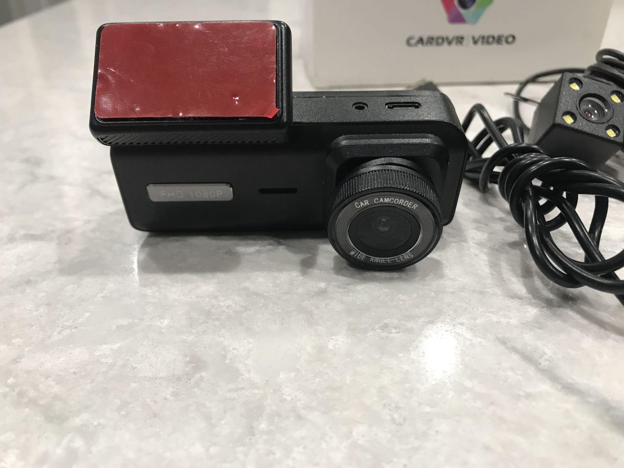 Dash camera. New never installed. Base has 2 cameras, Front and rear. Also has a separate wired camera for rear window. I plugged it in to test. It works but I don’t know how the wired camera part works, so didn’t test. The screen has a small scuff from being in the box, but doesn’t affect the unit. Not seen when camera is on. Needs micro SD card (not included).
