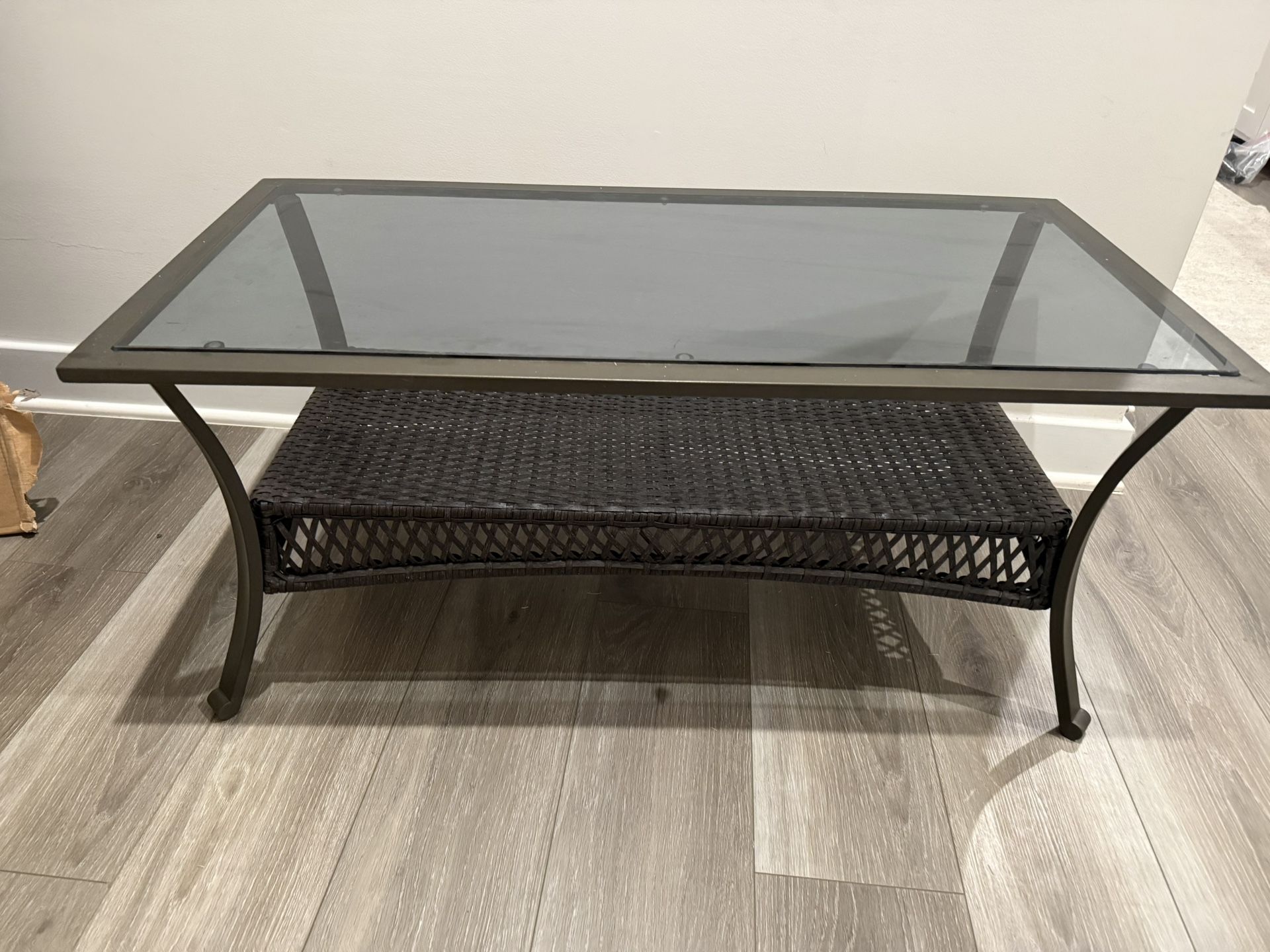 Outdoor Coffee Table, metal with Storage Wicker Patio Coffee Table, Tempered Glass Top Coffee Table for Patio Outside Balcony Porch Deck (Brown) 40“L x 20”W x 18”H $25.00 or Best offer