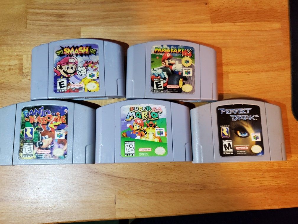 All games are tested and working. Cartridge and label wear and tear. Prices for each game below: Super Smash Bros. $40 Mario Kart $40 Super Mario 64 $35 Banjo Kazooie $30 Perfect Dark $25
