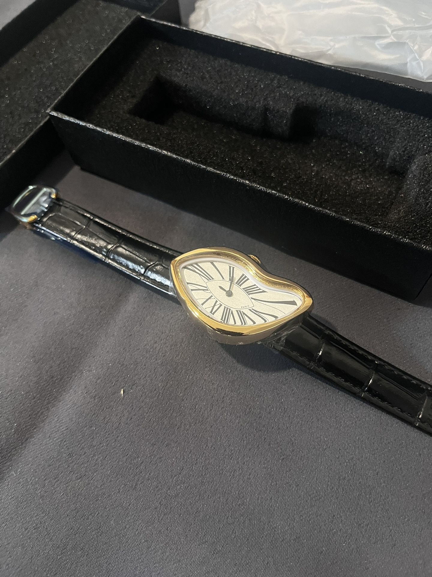 Melted gold luxury watch with Black adjustable band straps