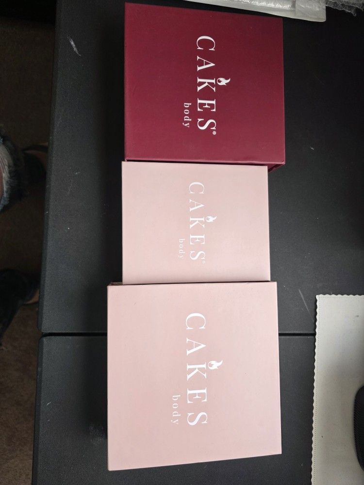 Brand new in box. Cakes body nipple shields. Size +(DDD). I bought them and never used them. And now I've lost so much weight they wouldn't fit anyway. Brand new from the company your looking at over 80 bucks. So these are half price. One pair original circles, one pair original triangles (for bathing suit coverage) and one pair of the sticky circles.
