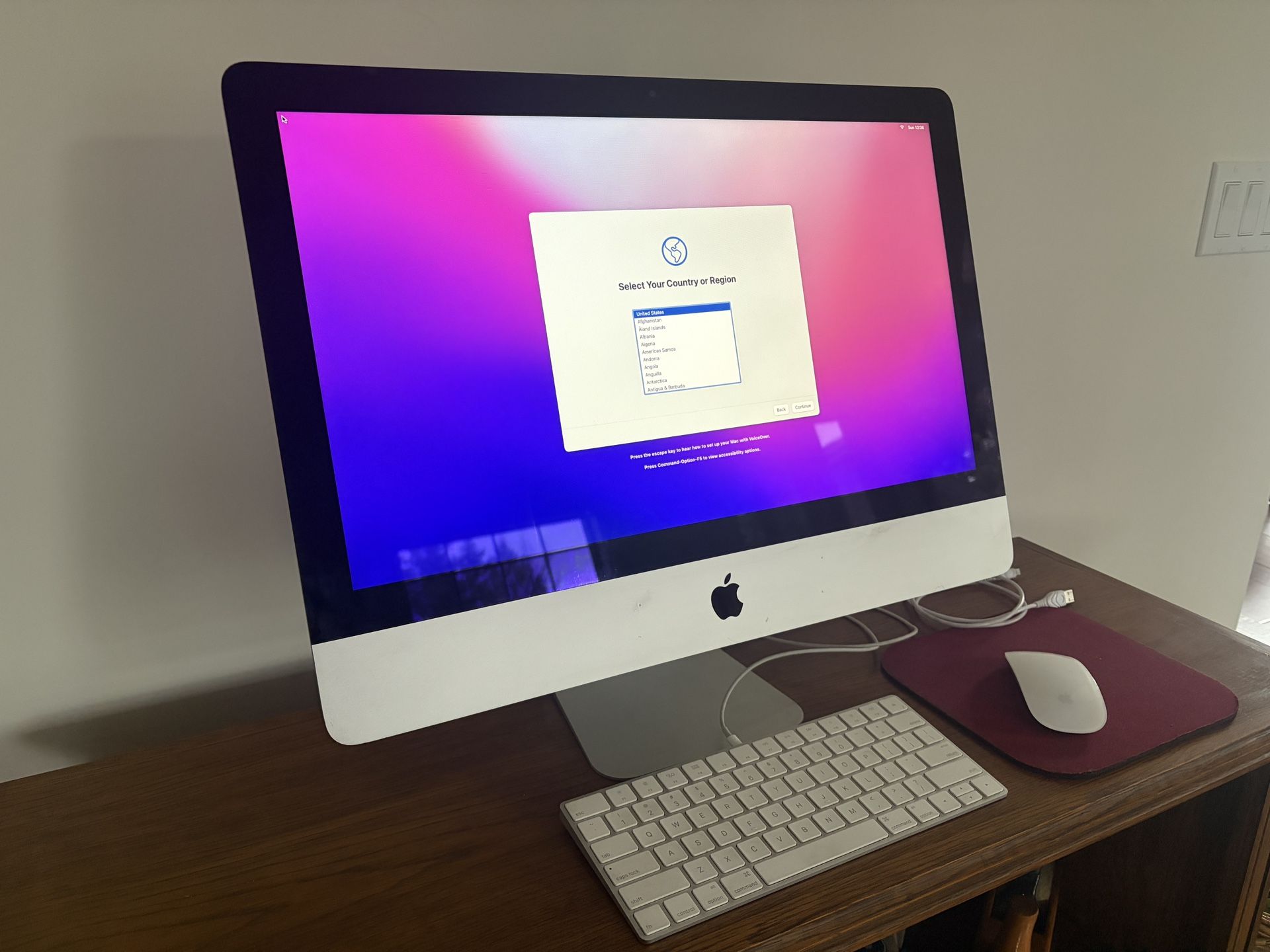 21.5 inch, LED backlit display. 1.6GHz dual core Intel Core i5 turbo boost. 8 gig RAM. One TB of hard drive memory. FaceTime HD camera. Stereo speakers, dual microphones, headphone jack. Wireless keyboard, wireless mouse. Immaculate condition, limited use. 2 thunderbolt ports. Still have the box. The computer is currently running macOS Monterey, version 12.7.6. That software was released in 2024.
