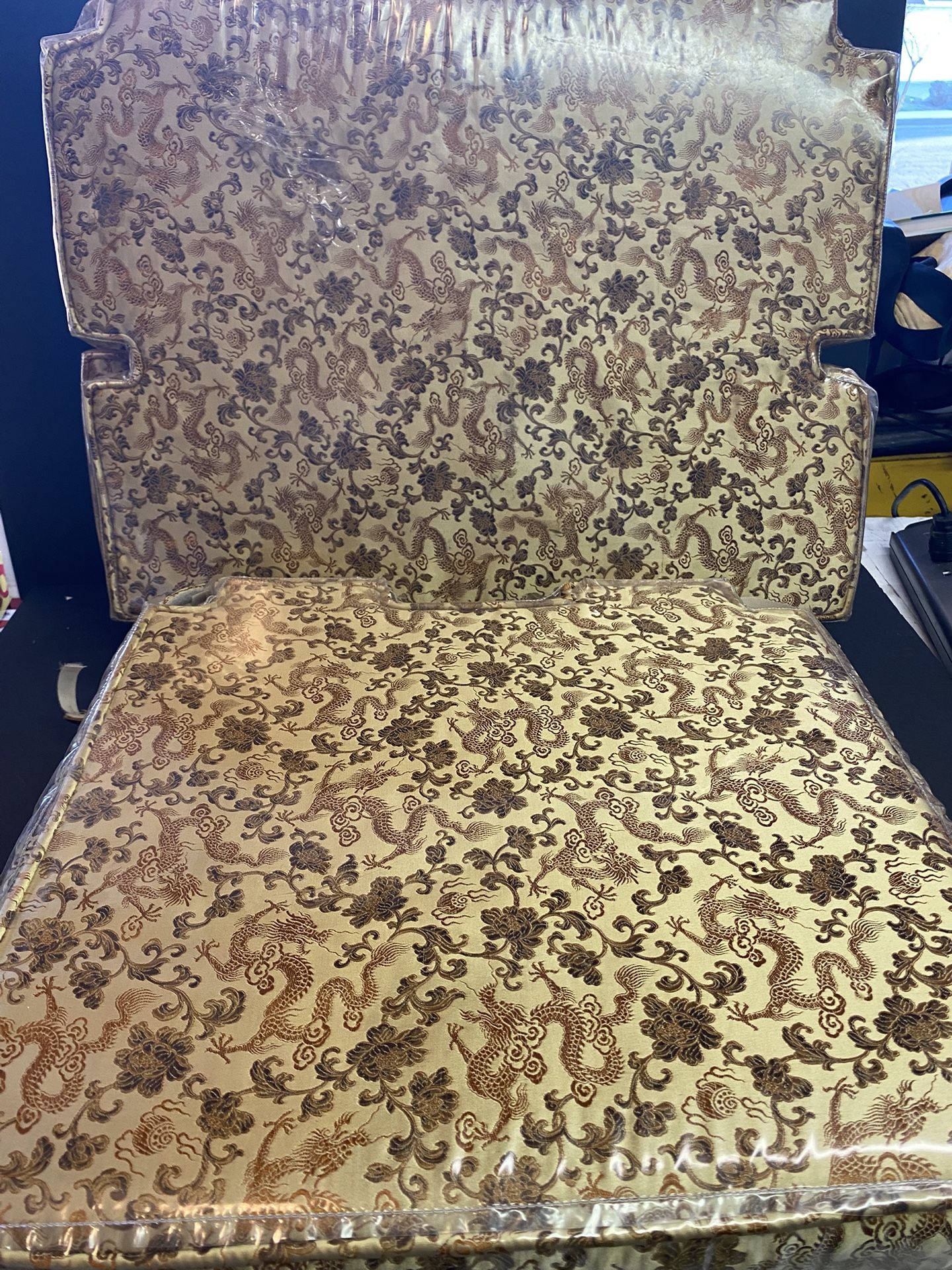 Vintage Oriental Silk Dragon Theme See Cushions Plastic Covered