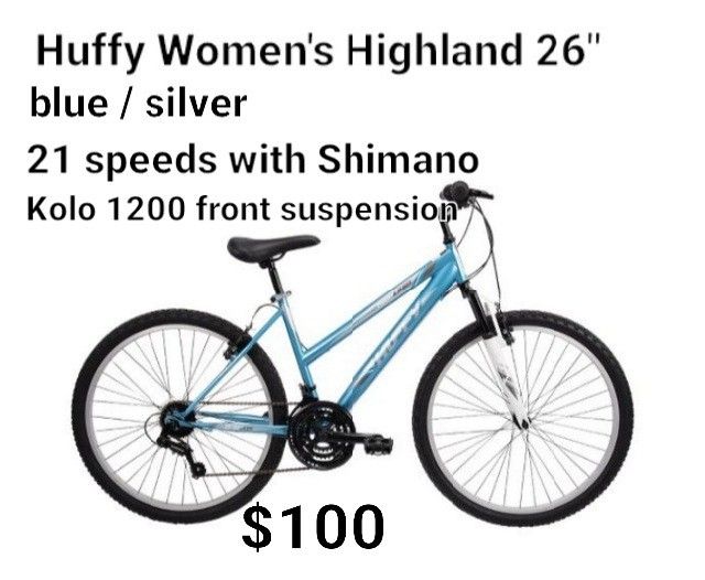 New Huffy Women's Highlands 26 Blue/ Silver / 21 Speed Shimano