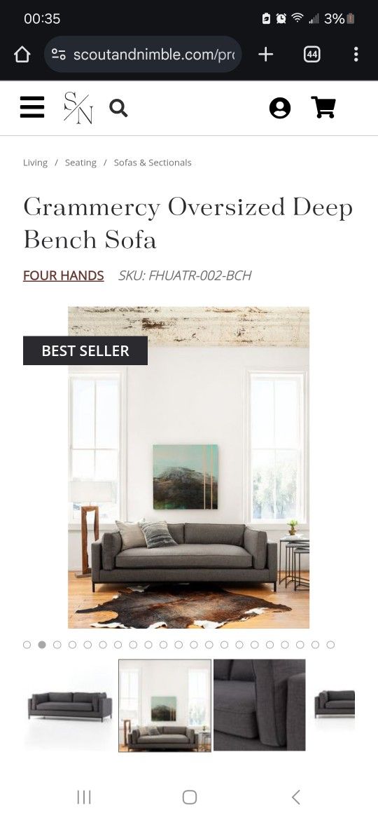 Four Hands Bench Grey Sofa