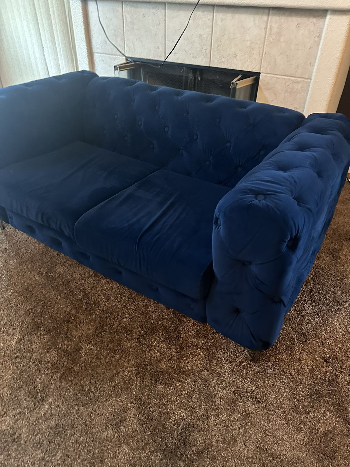 2 seat sofa and 2 chairs navy blue used but good condition.