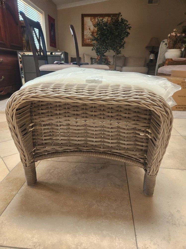 Large wicker ottoman. Hampton Bay beige color, brand new. Retail price over $ 210