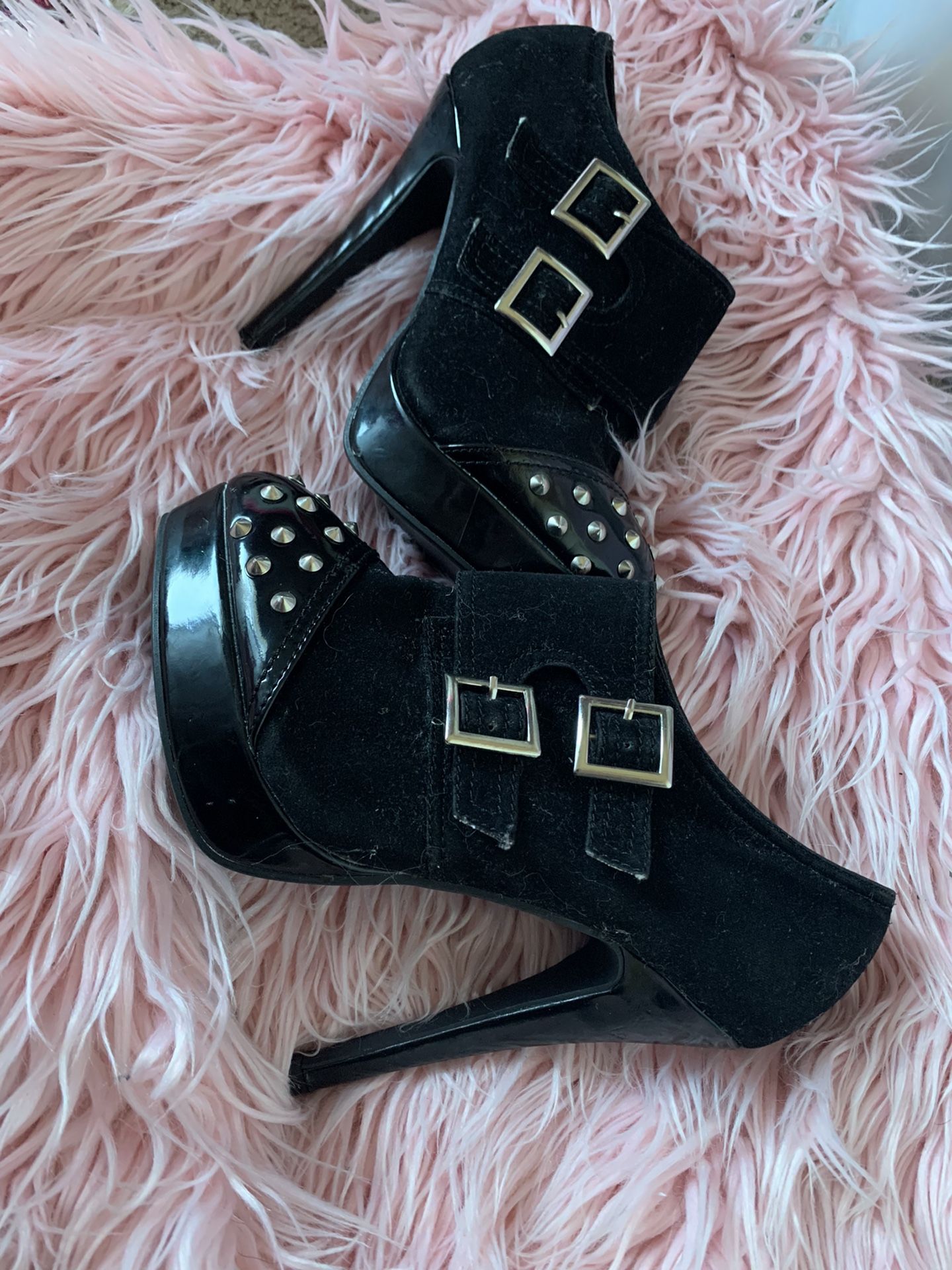 Black Rhinestone Buckle Heels