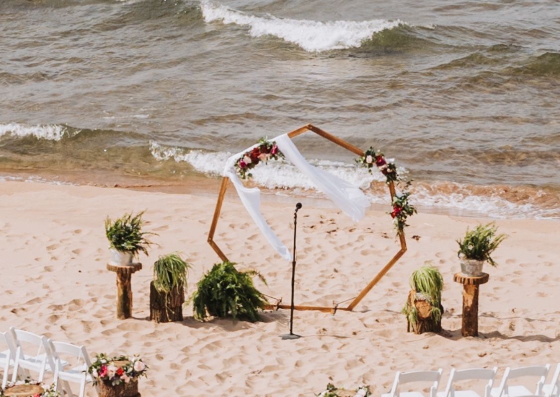 Will come disassembled. Assembly is very easy. 2 additional holes were drilled in the bottom piece to account for stakes in the sand.