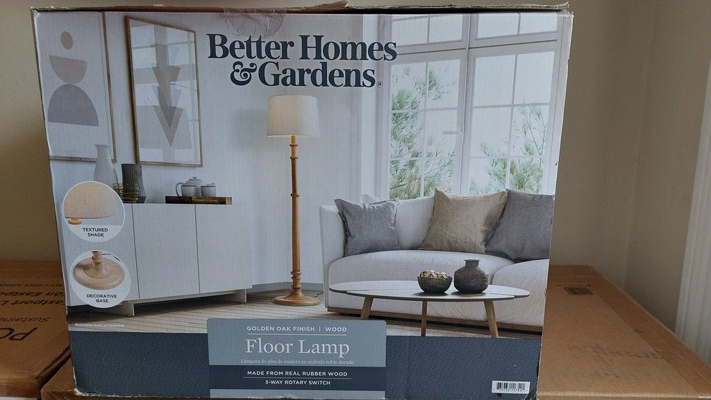 Golden Oak Finish Wood Floor Lamp ~New in Box ~