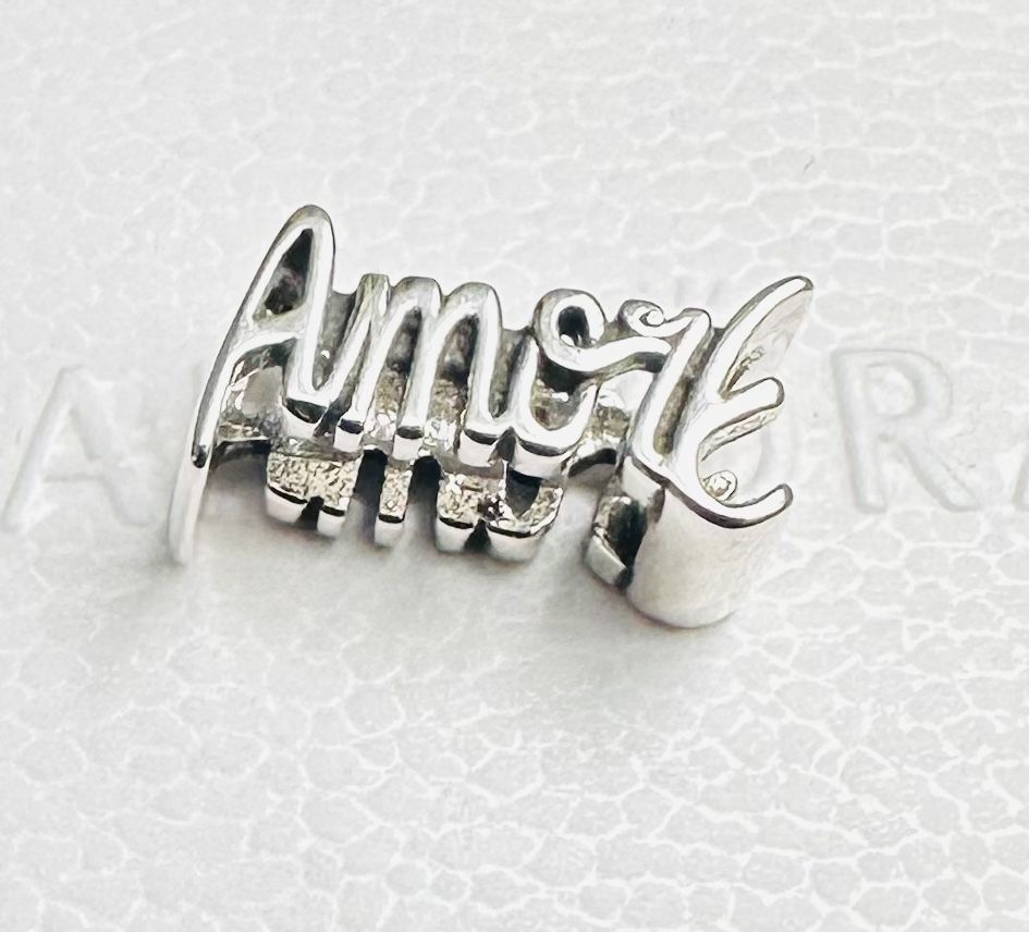 Pandora Amore Script Charm #794434C00 ~ FREE Pandora Gift Box + Tag Sterling Silver S 925 ALE Retails for $45.00 From Pandora, lean in to love with this eye-catching charm. Crafted in sterling silver with the handwritten word “AmorE” in an openwork design, it’s a bold expression of the love that connects us all.