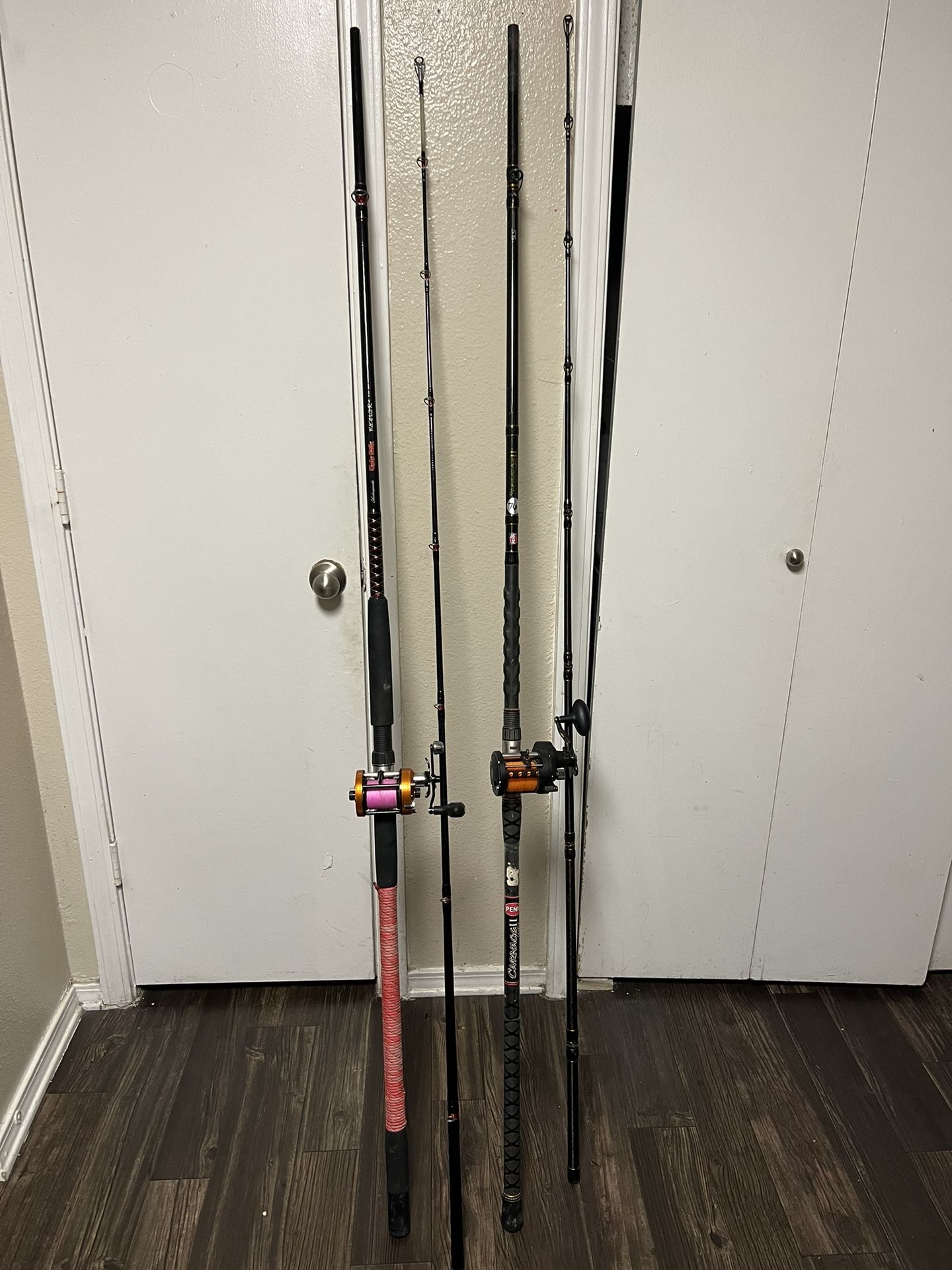 I have a Penn Carnage with a Penn Phantom Reel. 300$ Also an Ugly Stik with an Abu Garcia Catfish Special 7000. 150$ Price is negotiable.