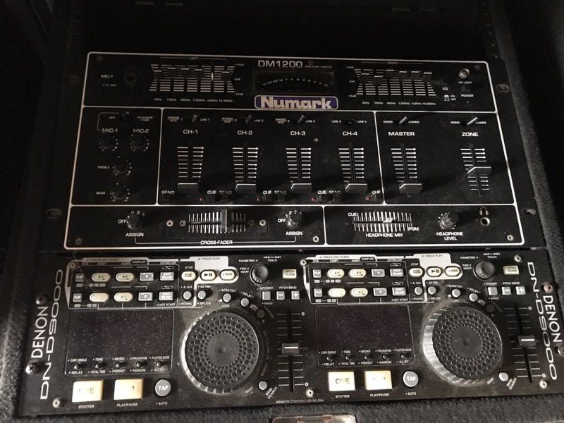Denon DJ DN-D9000 Numark DM 1200 Mixer QSC RMX 1450 Amp Odyssey 10 Space Rack