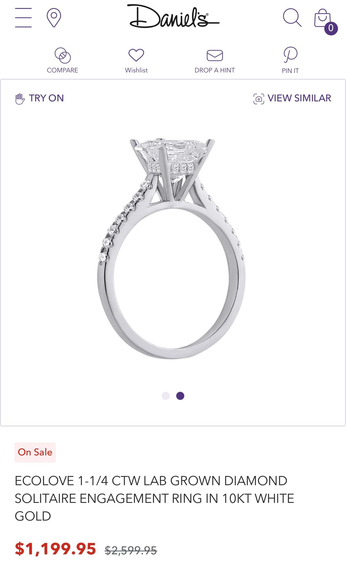 This engagement ring is brand new in box with receipt. I purchased two engagement rings and have went with the other one. You can see the product details on Daniels Jewlers website as this is currently selling for $1,199.95 - product number 11914157. Product details are also in the images. I cant return it since it is past the return window.