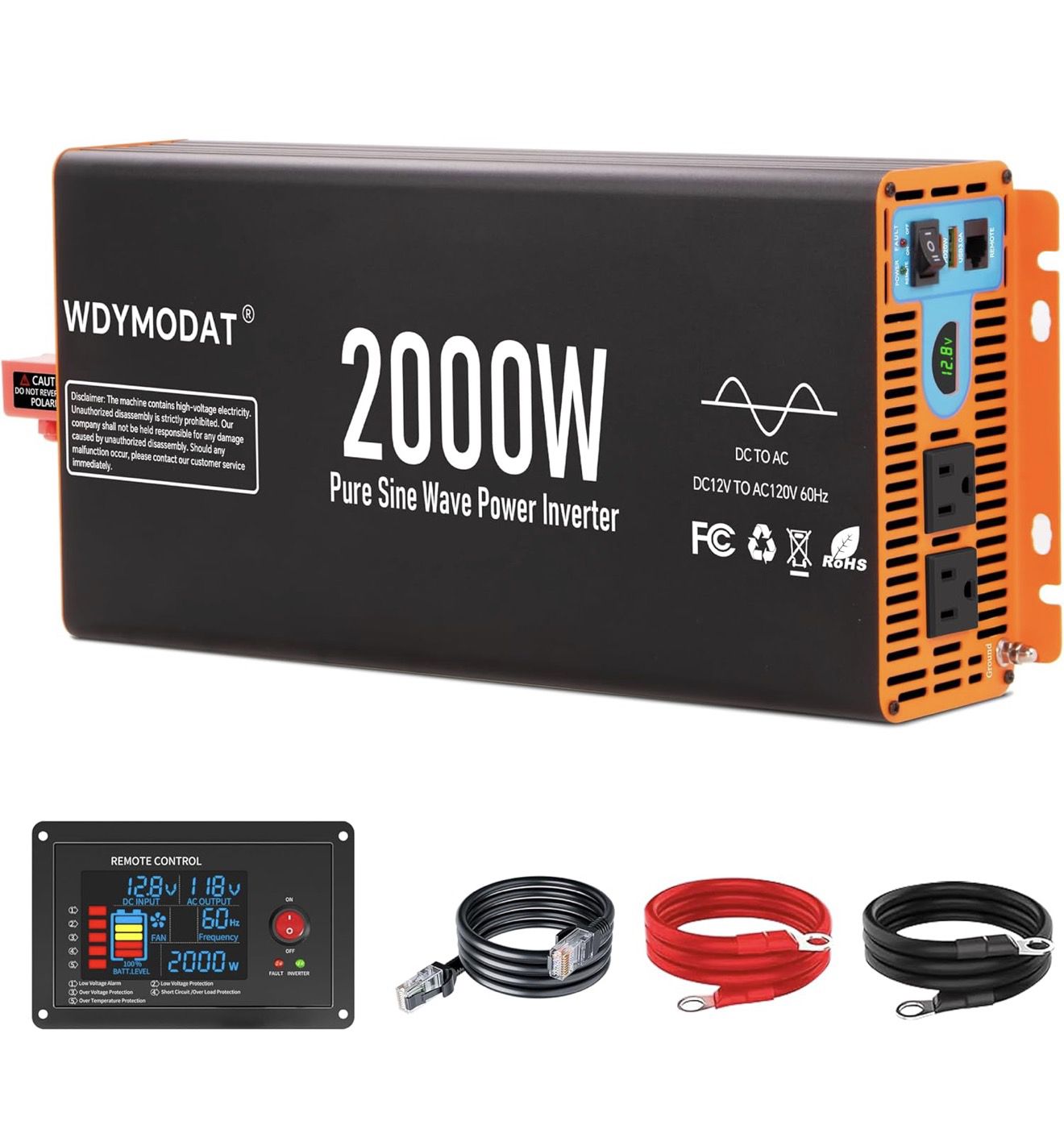 2000W Pure Sine Wave Inverter,12V DC to 120V AC Car Power Inverter 4000W Peak with 2AC Outlets, 3.0A USB and Type-C, LCD Display 16.5 ft Remote Control for RV Truck Travel Solar Emergency new $160