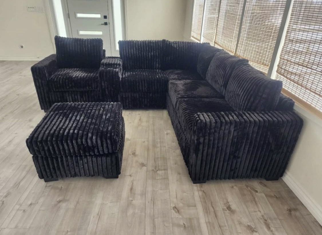 New Jumbo Corduroy Sectional Couch with USB Console, Cup Holders and Ottoman! Free Delivery 🚚!