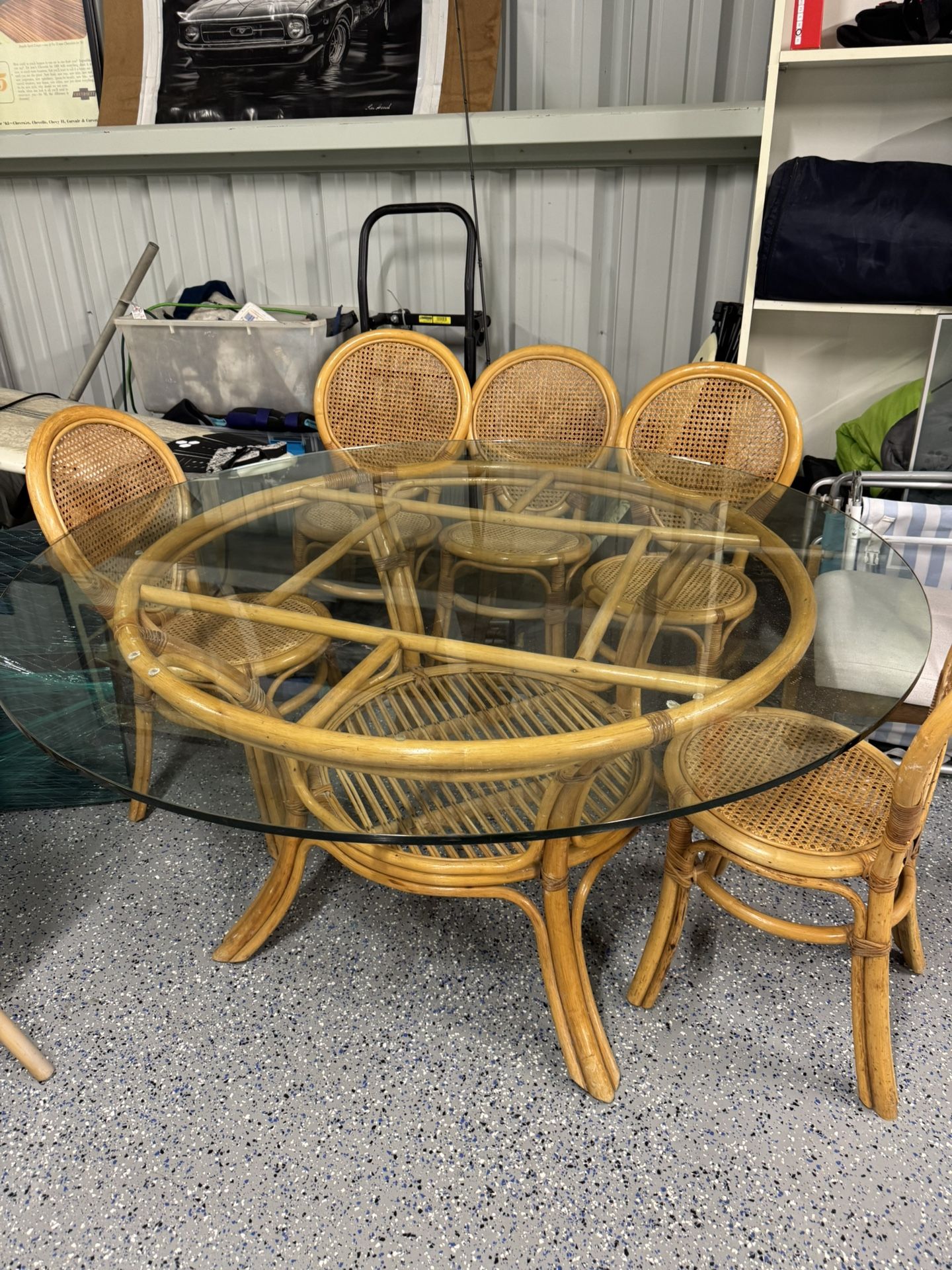 Boho rattan Glass Table + 5 Chairs High End -Just reduced !