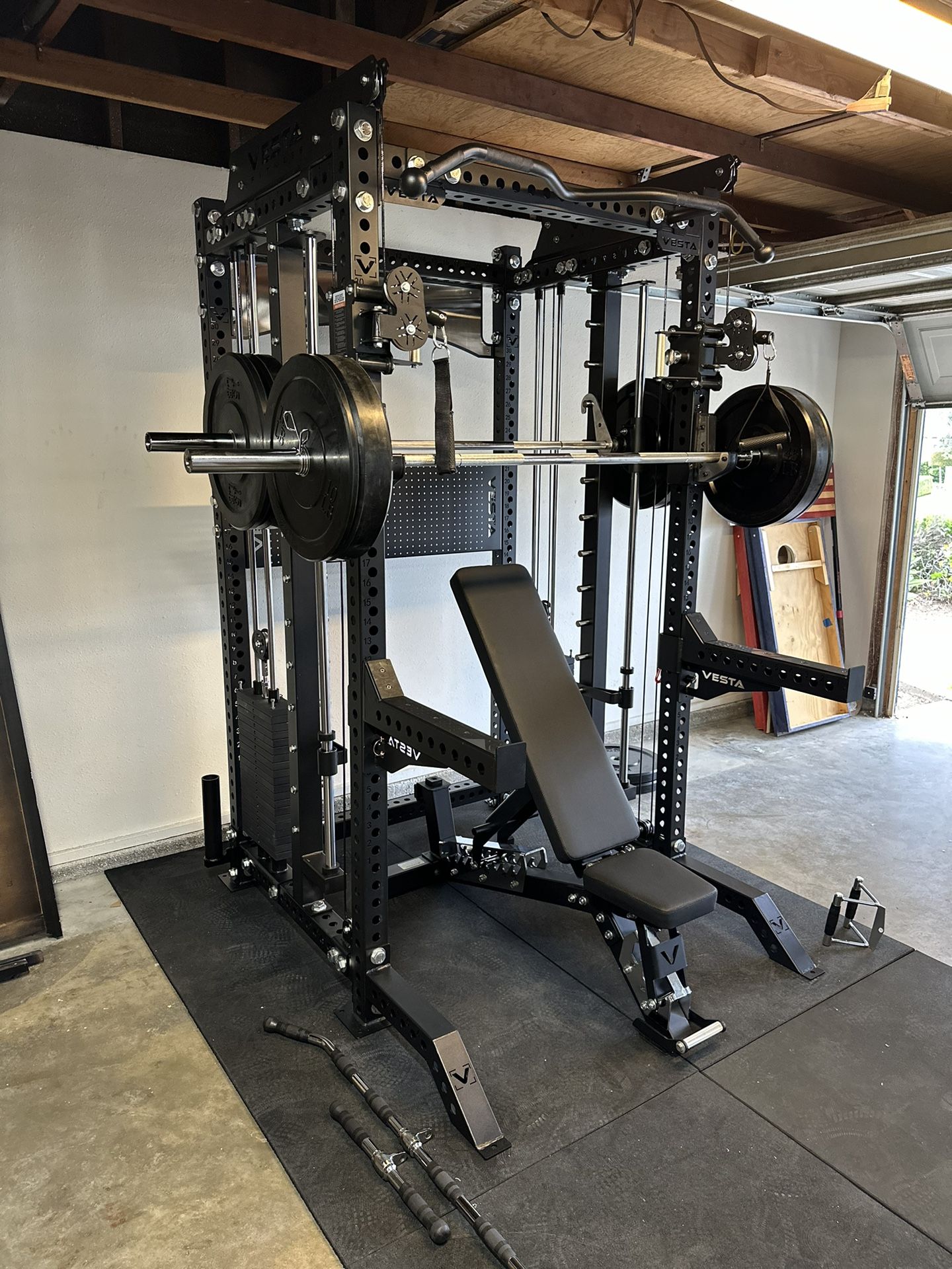 🏋🏽 Vesta Pro 3-1 Series w/Smith Bar🏋🏽 🚨 Smith Machine Barbell Location Options 👉🏽 Front Smith / Front Smith (Counterbalance) /Rear Smith👈🏽 ‼️PRICE MATCH AVAILABLE ‼️‼️ Includes Gym Equipment w/Weights! Let Me Help You Create Your Home Gym! Pro Series w/Smith Machine Bar New In Box! FREE DELIVERY AT FULL PRICE!Click Profile For More Gym Listings! Only Account! Cash / Credit Cards / Venmo / Finance Available! ➡️ COLORS AVAILABLE : CLEAR COAT / RED / WHITE / BLACK⬅️ ➡️➡️HEIGHTS : 94in / 86in⬅️⬅️ ➡️FREE DELIVERY at FULL PRICE ⬅️ •INSTALLATION IS AVAILABLE• •CREDIT & FINANCING AVAILABLE; •BUY NOW, PAY MONTHLY• ask for more info ➡️➡️MAKE IT A BUNDLE ⬅️⬅️ W/ AB3000 / 260 BUMPERS / 7Ft Barbell $4199 ⭐️⭐️⭐️⭐️⭐️ CUSTOMER SERVICE OVER 950+ SATISFIED CUSTOMERS 💪 🚨‼️SUMMER SPECIAL MESSAGE FOR MORE DETAILS‼️🚨 Prepare to be blown away by the astonishing versatility of our 3-IN-1 Machine - it’s not just a piece of equipment, it’s a game-changer. After extensive research, development, and rigorous testing of multiple prototypes, we’ve achieved perfection with our ultimate all-in-one machine - the best combination of a Half Rack, Functional Trainer, and Smith Machine. All our Pro Series products have laser cut numbering with 1-inch hole, 3”x3” frame with commercial 11-gauge steel and massive 1-inch hardwares. Tested and approved by multiple gym owners and personal trainers in our Los Angeles Showroom, this masterpiece is engineered to surpass expectations and built to endure, and set to redefine your fitness journey. MEASUREMENTS Height: 94" bottom to top of pulley Width: 80" total width, from end of the smith bar to the other end Length: 65" from foot extension to barbell holder in the back FEATURES 200lbs x2 weight stacks 33 height settings 2:1 Pulley Ratio Olympic Smith Barbell 45lb, 700lbs, with bearings Premium Aluminum pulley wheels Commercial grade cables J-Cups, Spotter Arms, and Barbell holder are all INCLUDED D-Handles is INCLUDED OLYMPIC WEIGHTS GYM EQUIPMENT OLYMPIC STANDARD WEIGHT SLED PUSH SLED WEIGHTS WEIGHT PESAS SQUAT RACK POWER CAGE SMITH MACHINE BENCH PRESS INCLINE DECLINE BARBELL BAR HEX BAR BUMPER PLATES ADJUSTABLE BENCH FLAT BENCH BENCH DUMBBELLS DUMBELL ADJUSTABLE DUMBBELLS KETTLE BELLS DIP STATION PULL UPS PULL DOWN BATTLE ROPE BOWFLEX POWERTEC POWERBLOCKS HOIST BODY SOLID ROGUE FITNESS EXERCISE