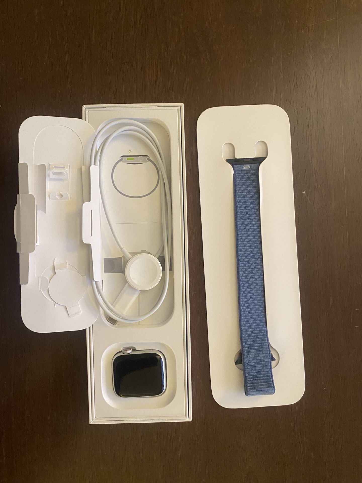 Cellular. Not used at all; the seal has been broken. Never been worn. Comes with winter blue band and charger.