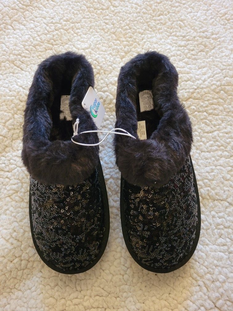 ♡ Girls Faux Fur Slippers ♡ Black Sequins ♡ Brand : Sugar & Jade ♡ Size 5 youth ♡ New with tags