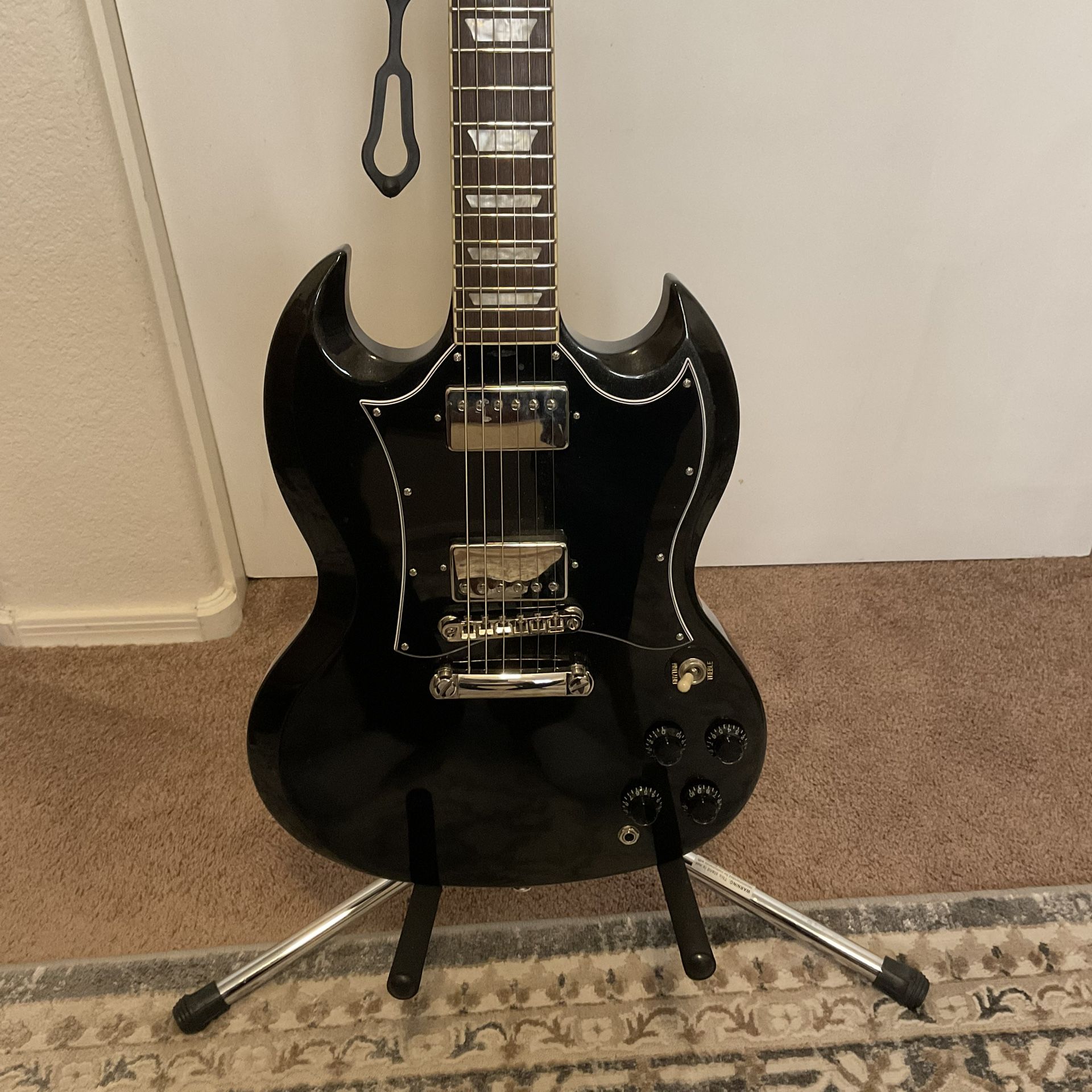 2023 Epiphone SG in black metal flake with String Butler added for tuning stability. Mint condition original owner comes with a padded gig bag and new Ditto Looper by TC Electronics