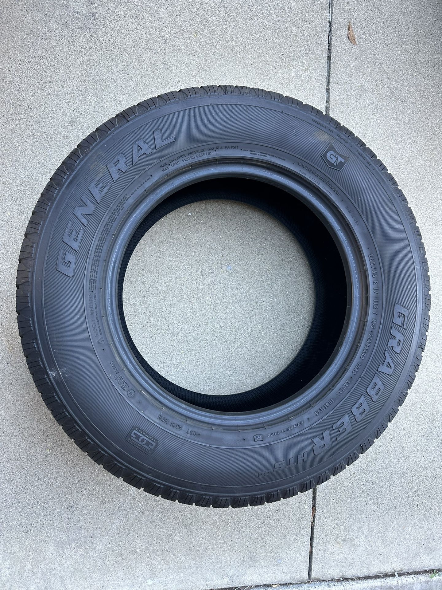 265/65R17 Like new I had them on a Toyota Tacoma and I upgrade them to a bigger size as you can see on the photos.