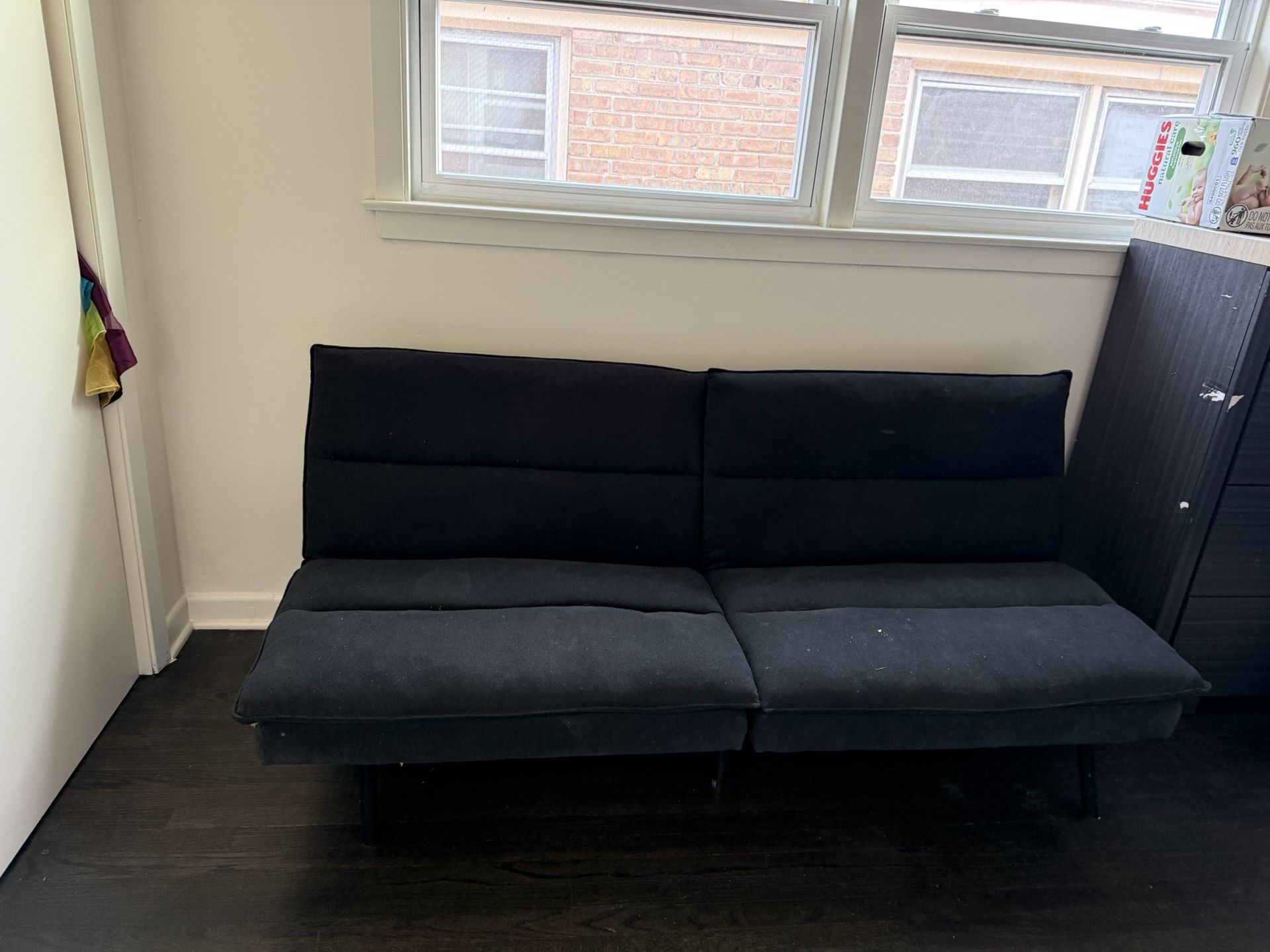 Futon couch Purchased 6 months ago for my boys room Currently moving; need gone asap. Purchased for 125$ only asking 80$ obo