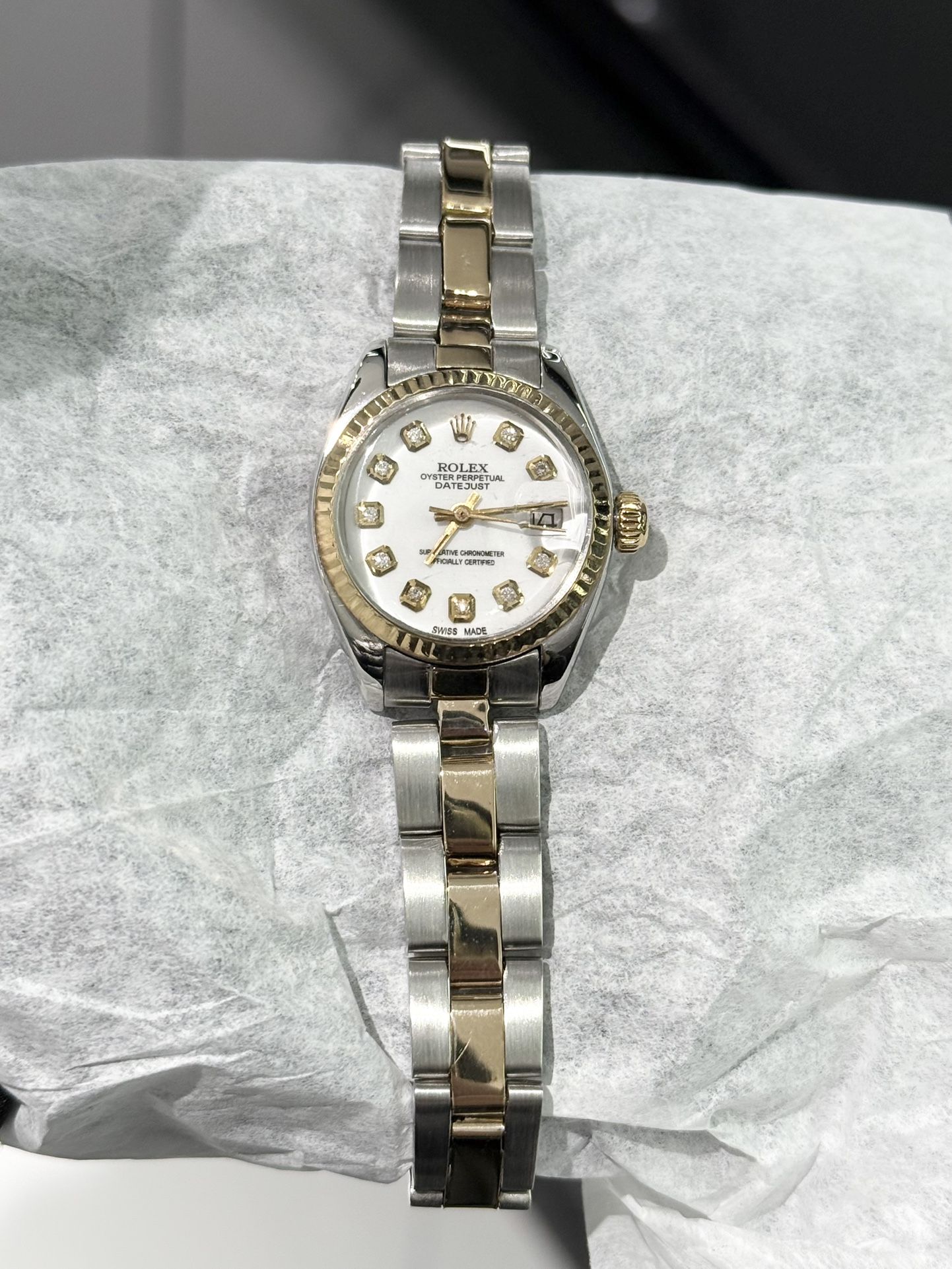 Authentic Womens 26mm Rolex Datejust Two Tone White Diamond Dial Mint Condition Like New β Comes with Box and Appraisal Authenticity Certificate π¦π $5500 Visit the shop in Downtown LA Jewelry District By Appointment