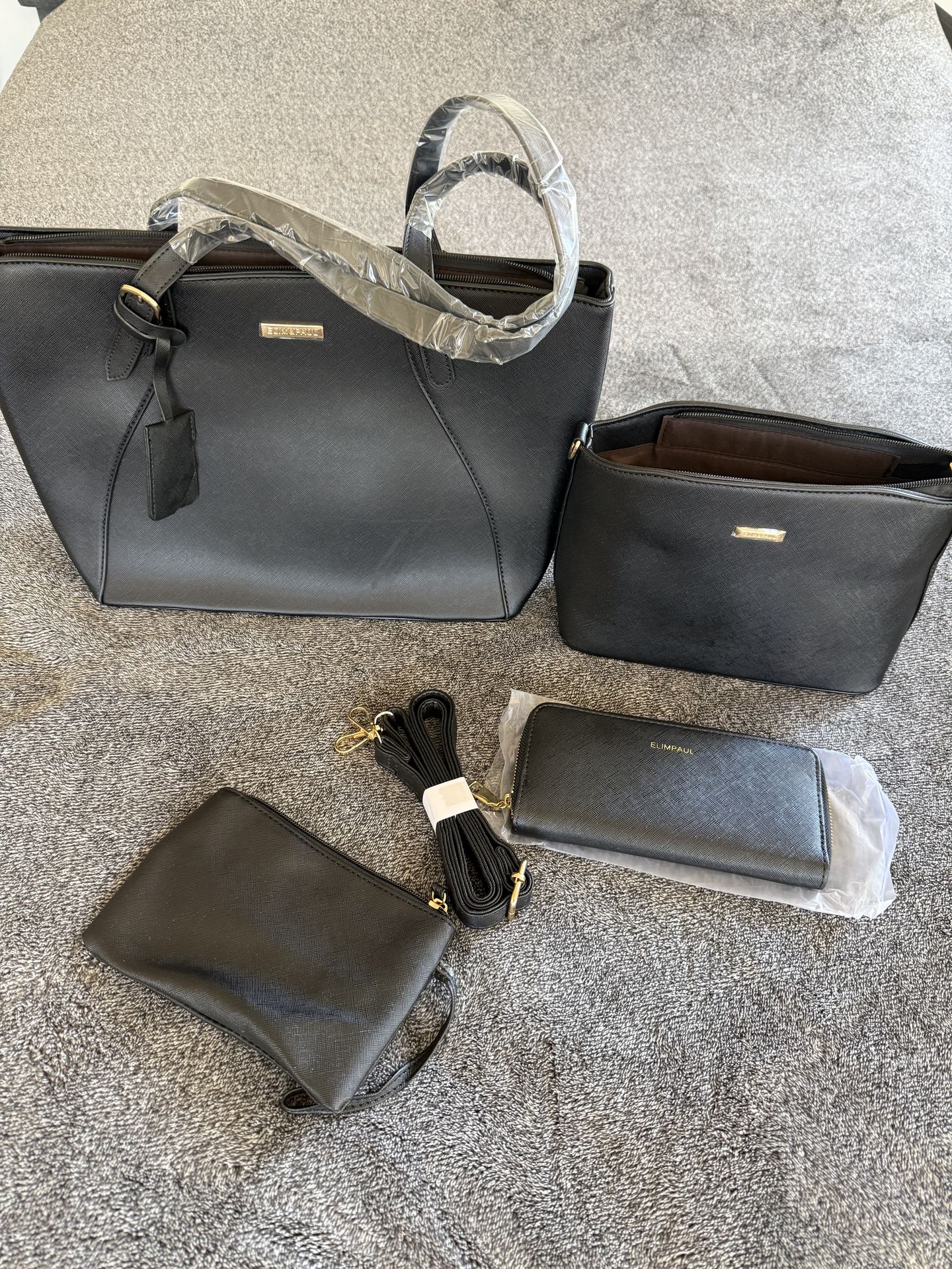 Black bag with wallet and small bag and another wallet 4 pieces