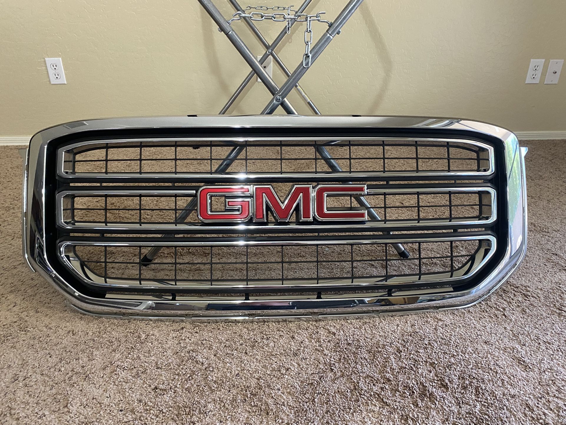 I have a factory/OEM 2018 GMC Yukon chrome grill for sale. I believe it will fit 2015-2020 Yukon models. It is broken some on the passenger side at the bottom. Most of what is broken won’t be seen once it’s installed but there is a small hairline crack in the surround that will show. It’s not very noticeable but it is there (see pictures). Other than that it is in very nice used condition. The emblem is included. Serious buyers only please. Low ballers will be ignored.