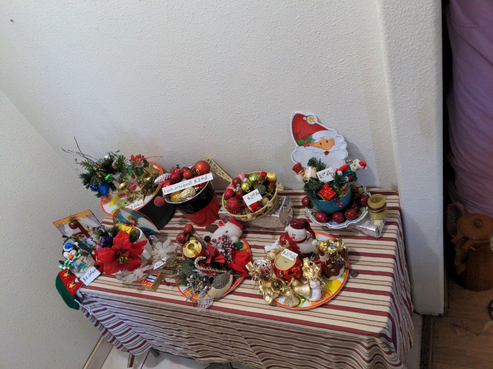 Diferente platess there áre a variety of Christmas ornaments Each plate costo two dólares($2.00dolars) Se habla español.
