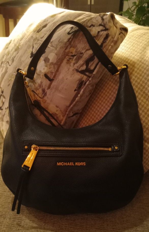 Michael Kors Soft All Leather Purse Black with Gold Hardware Perfect Contition Nwot