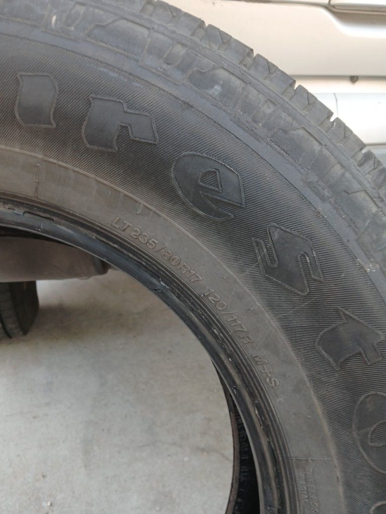 Sizes- Firestone LT235 80R17 Michelin 120/117R M+S Both for 75! or 50 each Send a message and location and i might be able to drop off. Area code 77041
