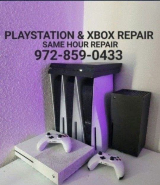 Parts available for repair pro Xbox series s x ps4 playstation 5 nintendo switch oled Any issue we can fix it Stick drift is available Hablamos español areglamos juegos y computadoras de todo problemas 8am-830pm mon-sun Areglamos controllers stick drift and analog Overheating Stick drift on all Remote Hardrives and SSD Replacement Loud fan Remotes losing signal Cd drive Replacement jammed or stuck cd Power supply replacements C port Replacements Randomly shutting off in the middle of the game USB Replacement Fan Replacement Updateerror or safemode