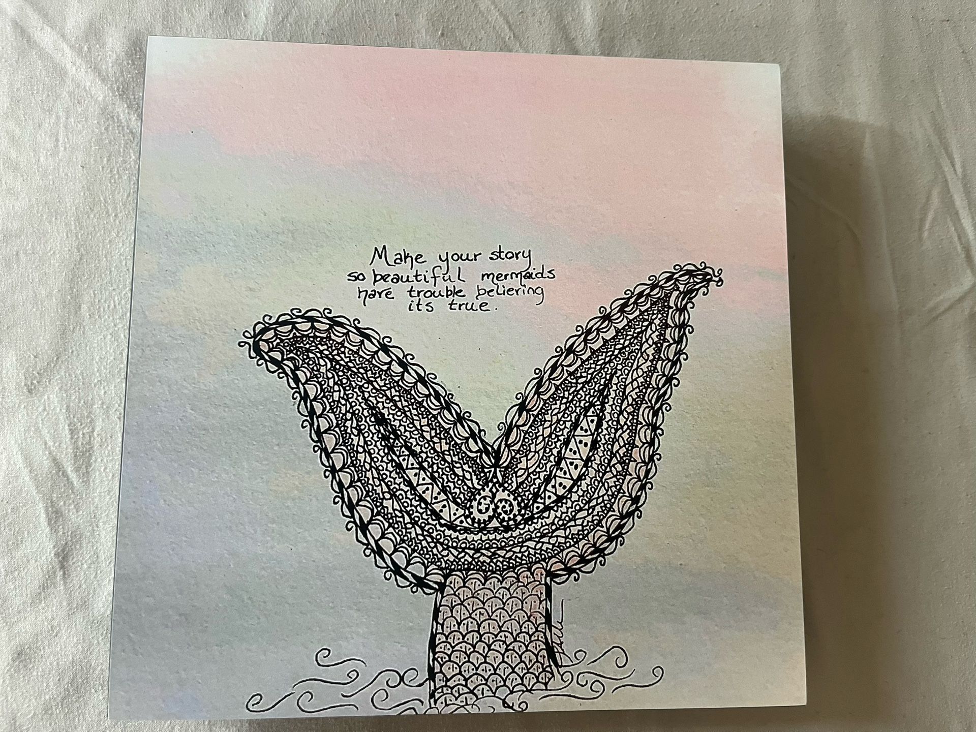 Original art by local Ventura artist. Tile is 8” x 8”. No glass cover. Adhesive strips included. Great for living room, hallway, bedroom, or kitchen.(not recommended for bathroom due to steam.)