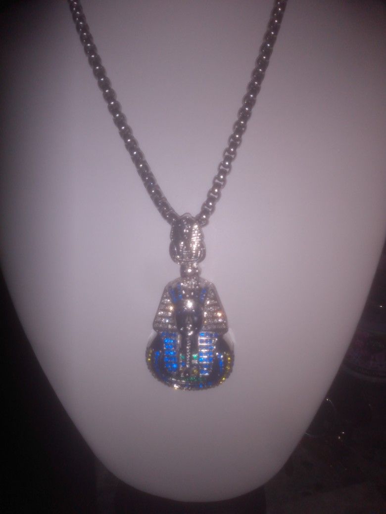 Silver Stainless Steel Alligator Bubble Chain With Egyptian Charm