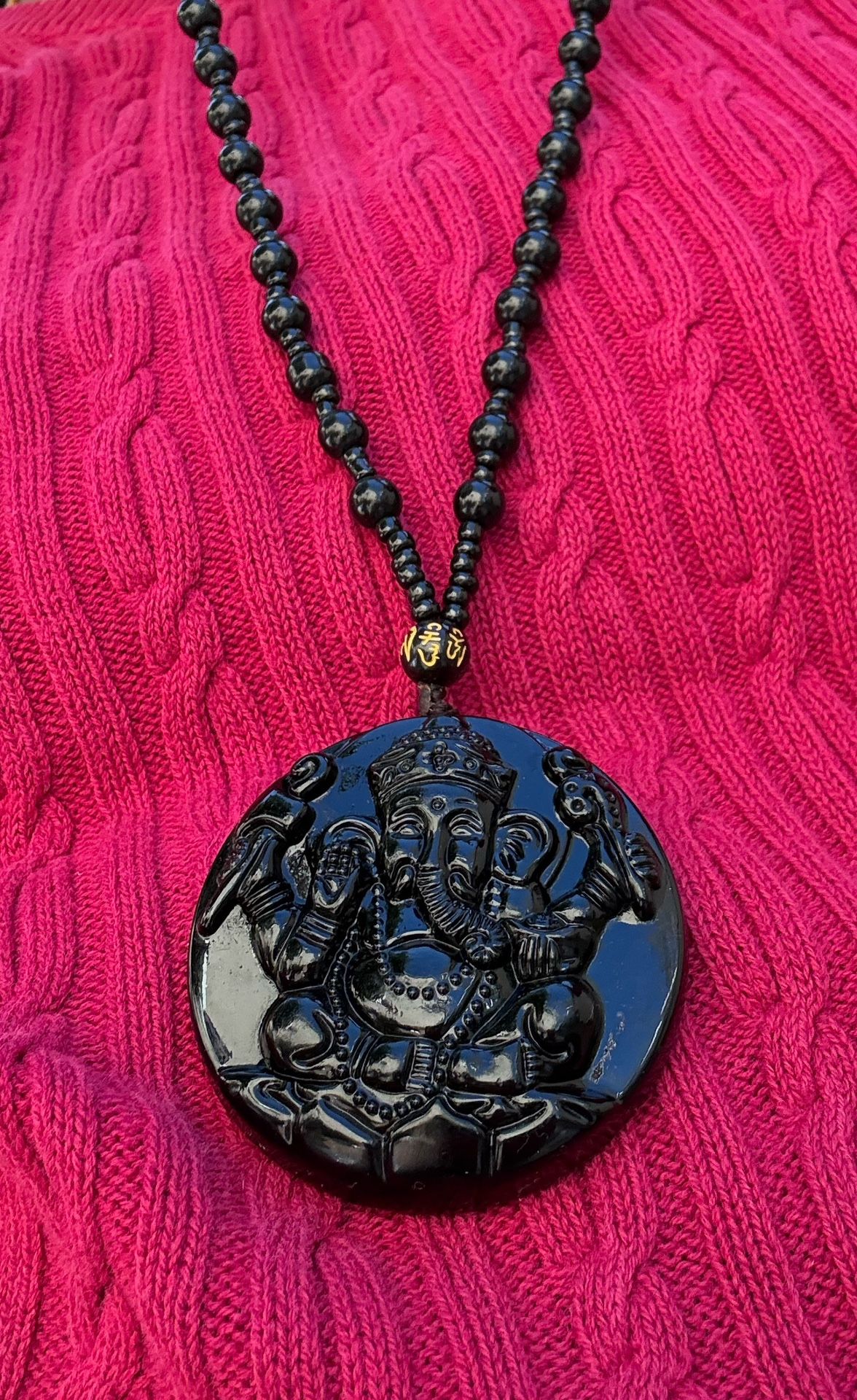 NATURAL OBSIDIAN GANESH LUCKY ELEPHANT PENDANT