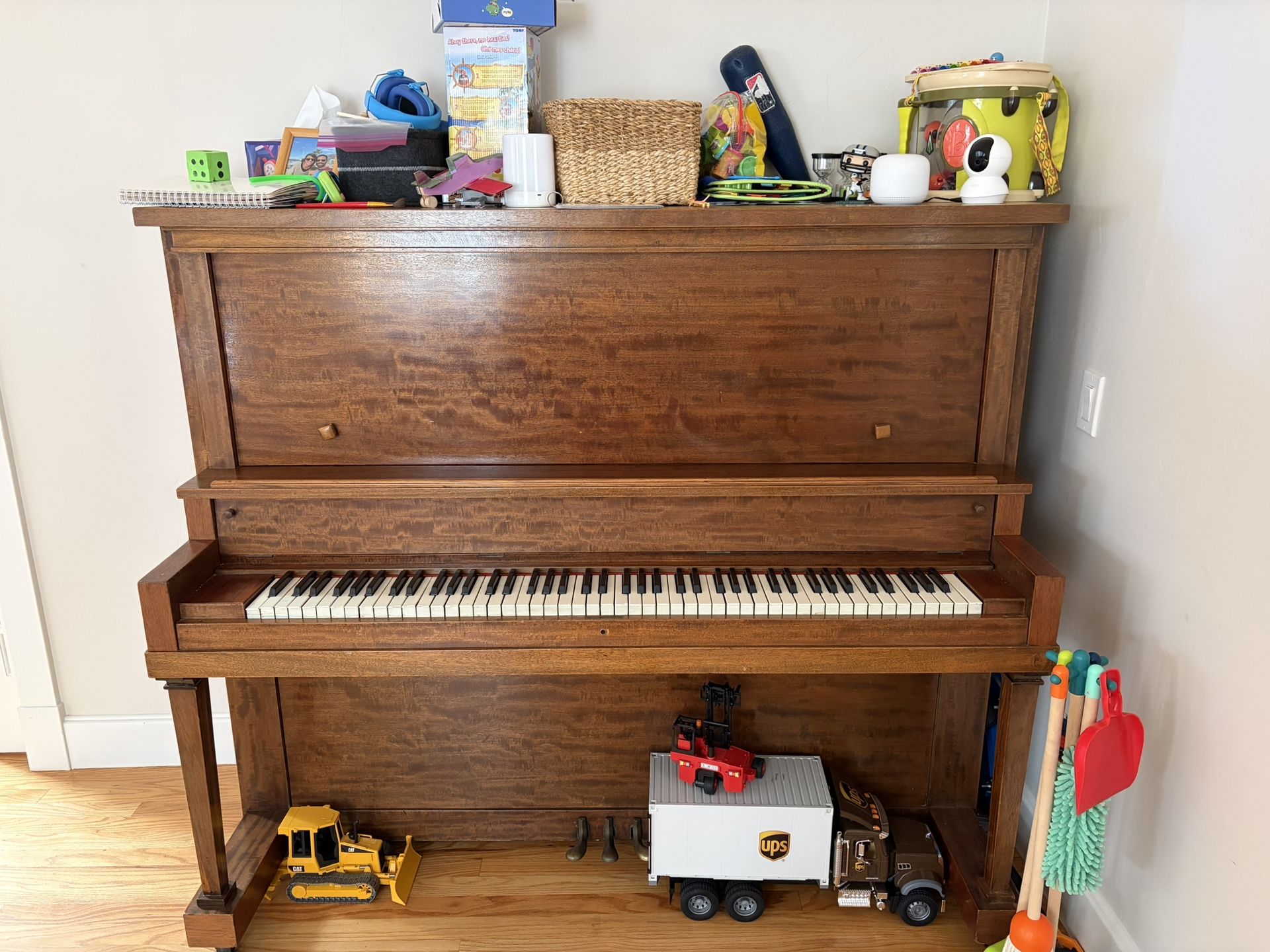 FREE!!!! Old piano works fine. Not sure of manufacturer. NO delivery service.